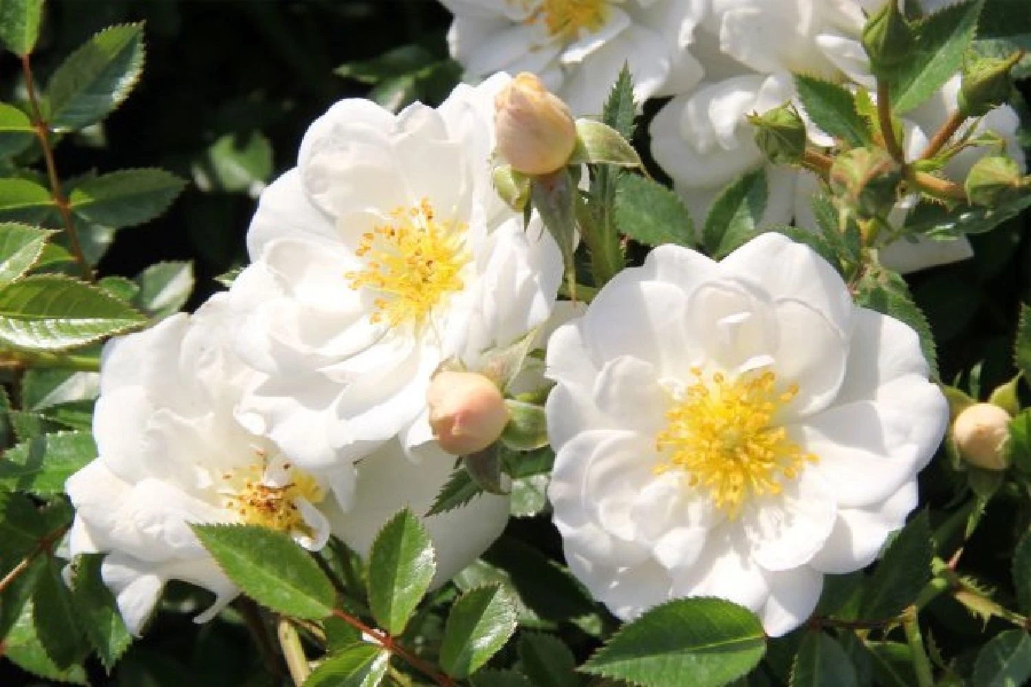 Nicht satt sehen kann man sich, wenn im Hintergrund des Beetes die Kugeldistel ihre golfballgroßen, stahlblauen Blütenbälle in den Himmel reckt und fleißig von flauschigen Hummeln besucht wird. Mit der ungefüllt blühenden Bienenweide-Rose® kommen auch Rosenfreunde ganz auf ihre Kosten. Nicht nur blüht diese unkomplizierte Schöne öfter über die Sommermonate, im Herbst erscheinen zudem hübsche kleine Hagebutten.