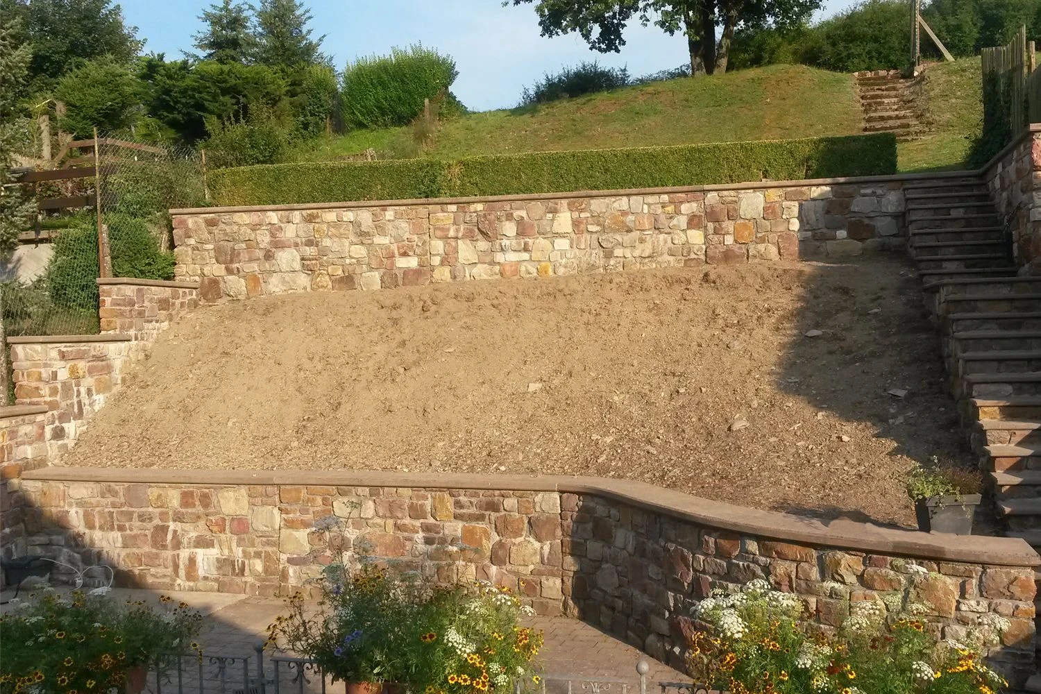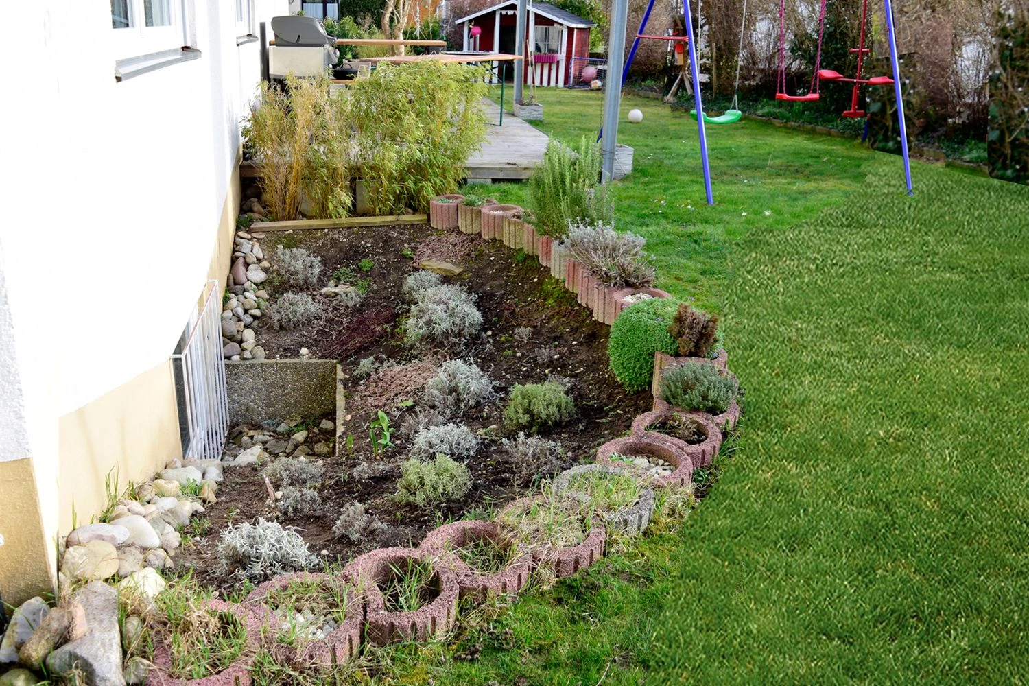 Grundstücke am Hang können einen vor ungeahnte Herausforderungen stellen. Nicht nur lässt es sich an steilen Böschungen schlecht gärtnern, auch Niederschlag droht, die Erde wegzuspülen. Ob für schräge Böschungen oder sonnige Kellerschächte wie in den zwei dargestellten Beispielen, das Beetpaket “Das Hangbeet” bietet hier mit seiner Staudenmischung eine wertvolle Lösung. Eine ganztägige Besonnung sowie ein eher trockener Boden sind dabei für die im Paket enthaltenen stresstoleranten Pflanzen kein Problem, die gleichzeitig durch ihr Laub und Wurzelwerk den Boden schützen und festhalten.