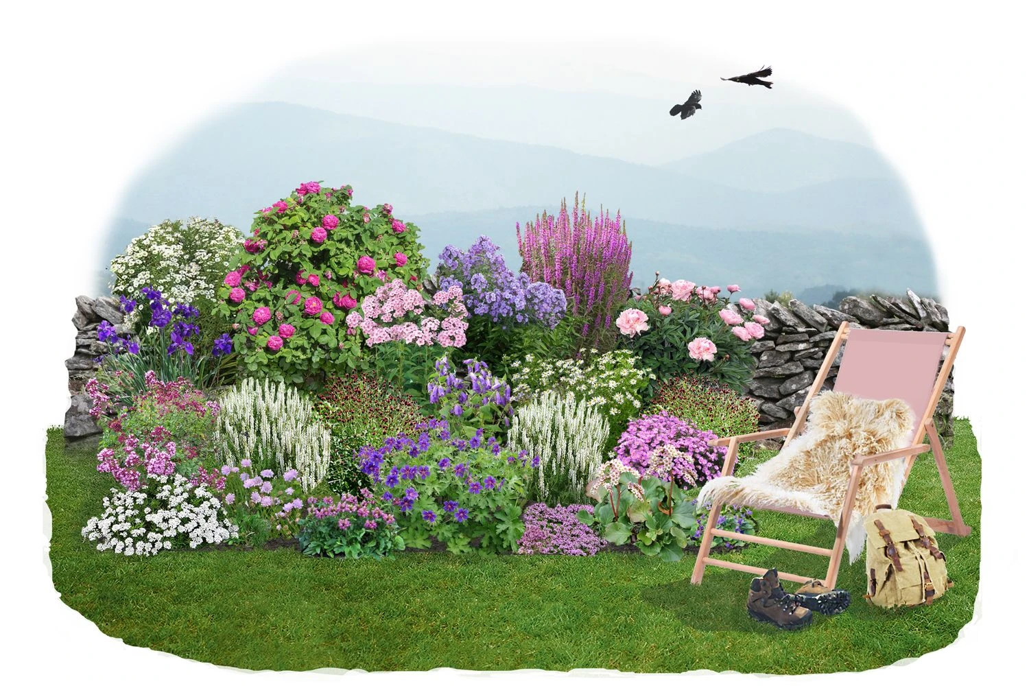 Die Stars unter den Höhenfliegern vereinen sich in der Beet-Idee ‘Der Berg ruft‘ zu einem blütenreichen Ensemble, das, je nach Lage des Gartens, von März bis Oktober für willkommenen Duft und Farbe sorgt.