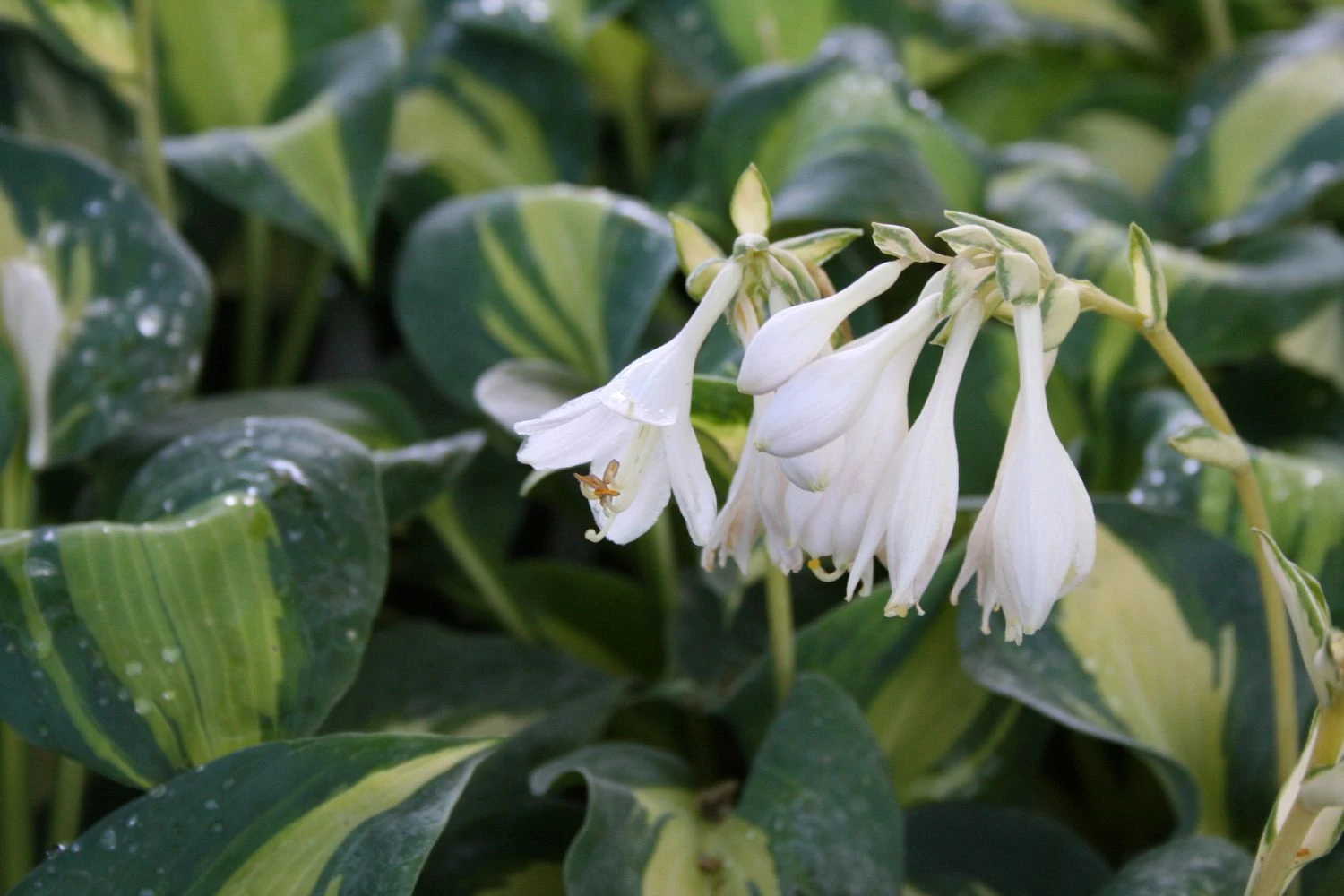Große, etwa 75 cm breite Horste mit mittelgroßem, sehr farbigem Laub. Ein breiter unregelmäßiger blaugrüner Rand umgibt eine cremegelbe Mitte. Steht sie schattiger, wird die Mitte grünlichgelb, der Rand blauer. Die sehr zahlreichen weißen Blüten sorgen dafür, daß diese Hosta die großen Erwartungen voll erfüllt.