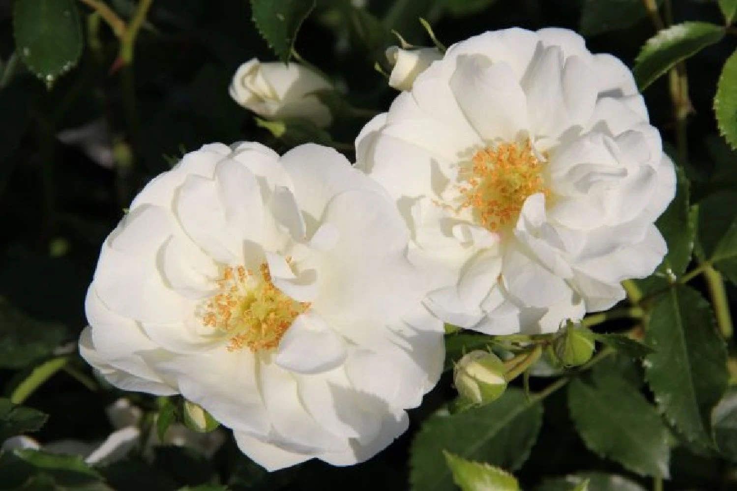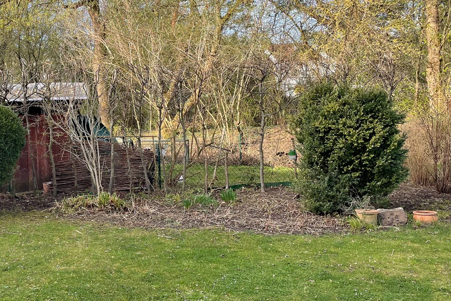 Für eine Verlängerung und Ergänzung der Blütezeit lohnt es sich, im Herbst Blumenzwiebeln wie etwa Tulpen zu pflanzen. Sie sorgen Ende April, wenn die Stauden erst im grünen Laubgewand dastehen für erste Blütenfreude. Besonders geeignet für den Halbschatten sind sogenannte Viridiflora-Tulpen. Eine hohe Wand im Hintergrund lässt sich zusätzlich, auch in halbschattiger Lage, mit Kletterrosen wie z.B. der zartgelben, englischen Rose ‚Malvern Hills‘ oder der weißen Kletterrose ‚Guirlande d’Amour‘ begrünen. Ihre zarten, kleinen Blüten harmonieren perfekt mit den Farben des Beetes.
