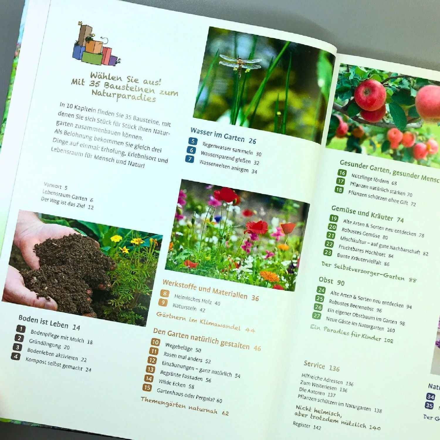 Im täglichen Leben ist es gar nicht so einfach, der Natur etwas Gutes zu tun. Wer würde nicht gerne mit dem Fahrrad zur Arbeit fahren, sein Haus klimafreundlich umbauen und einen möglichst kleinen CO2-Fußabdruck hinterlassen? Öffnen Sie der Natur doch einfach das Gartentor! Mit den 35 Bausteinen in diesem Buch können Sie sich Ihren Naturgarten einfach selbst zusammenbauen: Ob ein Stückchen Wiese statt Rasen, regionale Materialien für die Trockenmauer, leckere Ernte aus Hochbeet und Mischkultur oder Bienen-Tankstelle und Fledermaus-Villa – hier erfahren Sie, wie Sie sich mehr Natur in den Garten holen können. Als Belohnung gibt es Erholung, Lebensraum und Erlebnisort für Mensch und Natur!