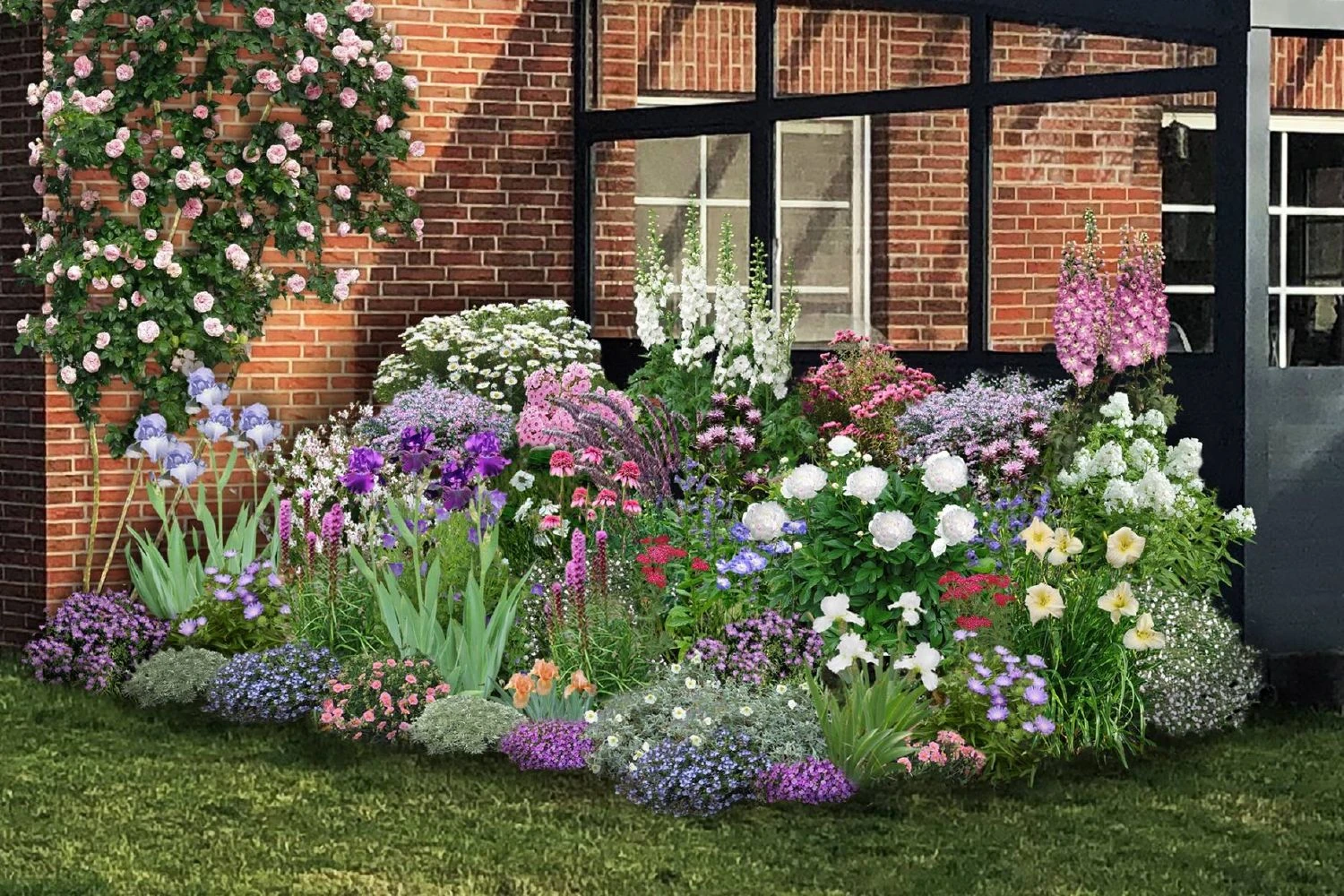 „Träum groß, pflanz groß“ ist das Motto des Zeppelin-Beetpakets ‚Pastellbeet‘, das ideal ist, um Gartenflächen von bis zu 10 m² in ein märchenhaftes Blütenmeer zu verwandeln. In diesem Beispiel eines Einfamilienhauses bot sich eine offene Fläche zwischen Hauswand und Veranda als Ort für eine neue, blütenreiche Gestaltung an.