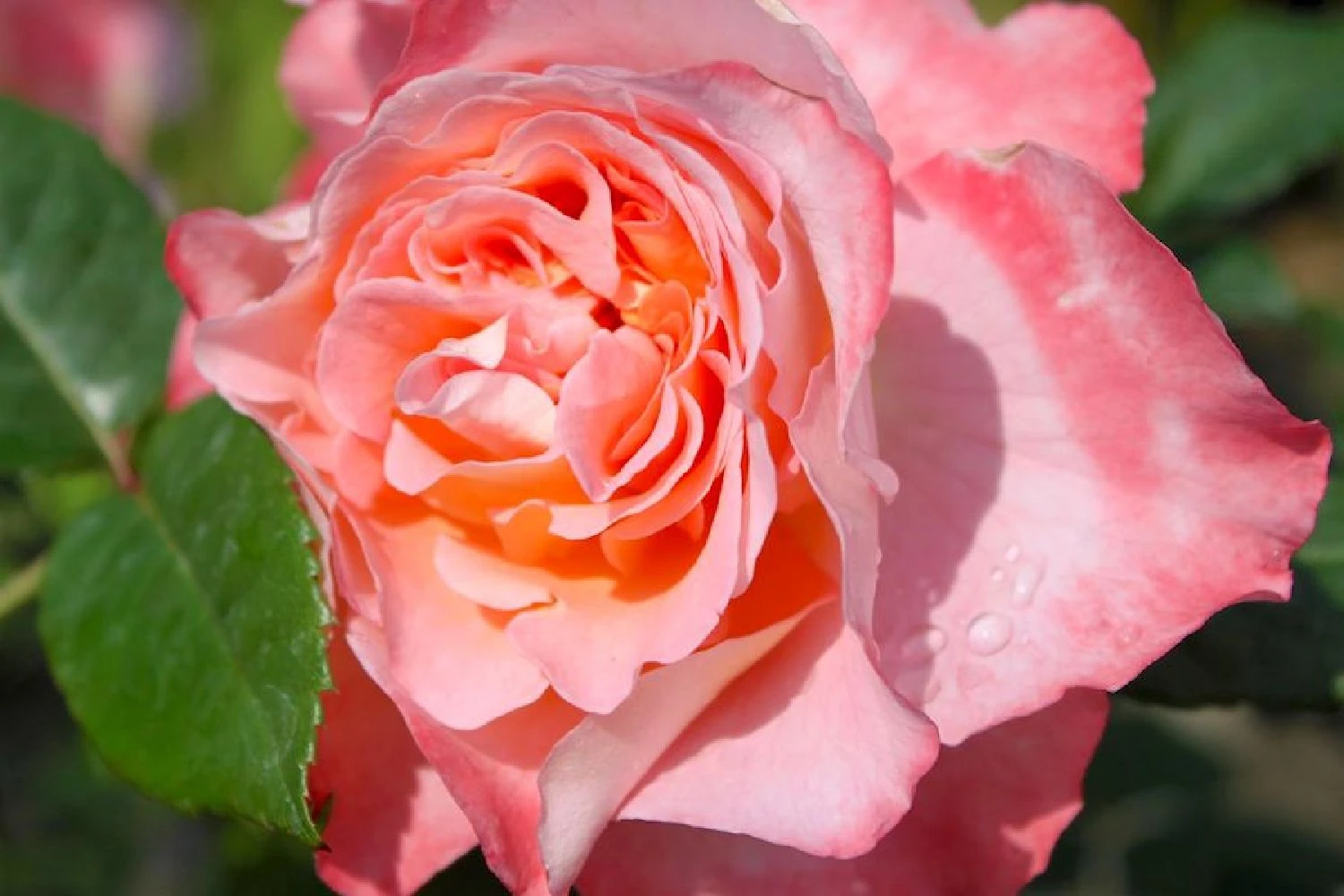 Die Farbe dieser Rosensorte changiert von rose bis apricot mit Anflug von rot und gelb, fruchtig-süßer Edelrosenduft.