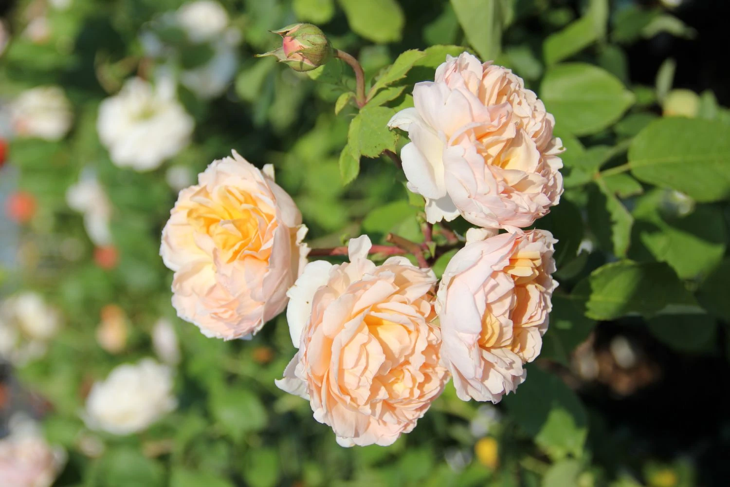 Die Rose ‘The Lady Gardener’ besticht mit apricotfarbenen Blüten und intensivem Teerosenduft.